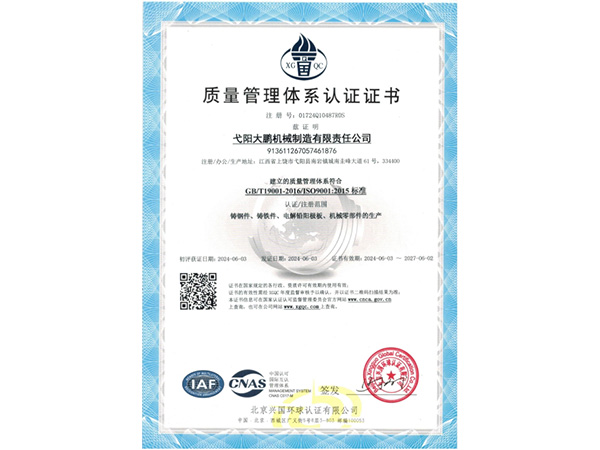 • 09-28弋陽(yáng)大鵬機(jī)械制造有限責(zé)任公司成功取得規(guī)范